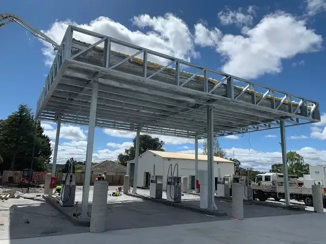 Service station canopy installation requires careful coordination to minimise business disruption while ensuring structural integrity and operational safety. Our construction specialists manage complete project implementation from design through commissioning while maintaining fuel retail operations.